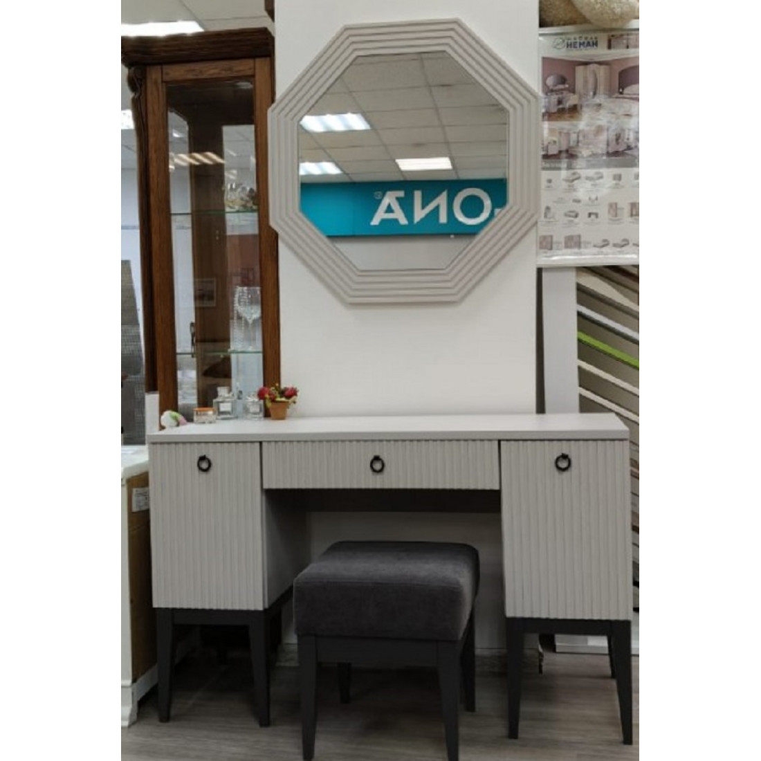 РАСПРОДАЖА С ЭКСПОЗИЦИИ СТОЛ ТУАЛЕТНЫЙ С ЗЕРКАЛОМ! ЦВЕТ КАШЕМИР СЕРЫЙ! БАНКЕТКА В ПОДАРОК!